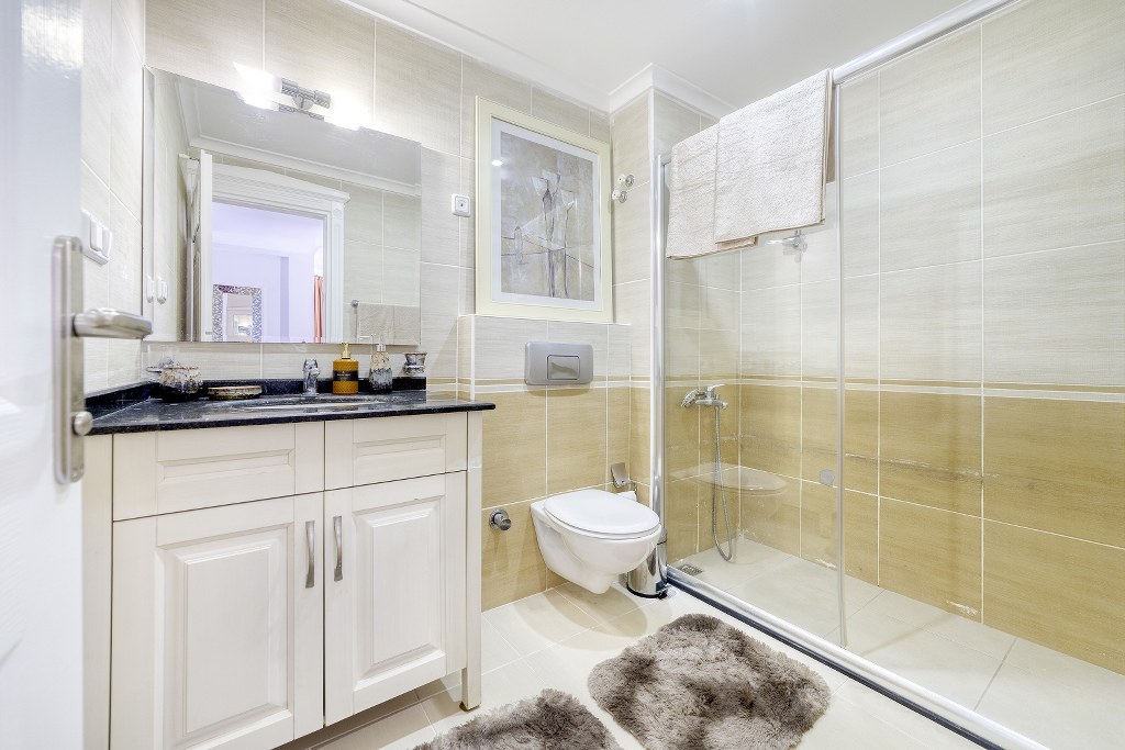 Seramik zemin,spot ışıklar,duşa kabin,amerikan mutfak,çelik kapı.